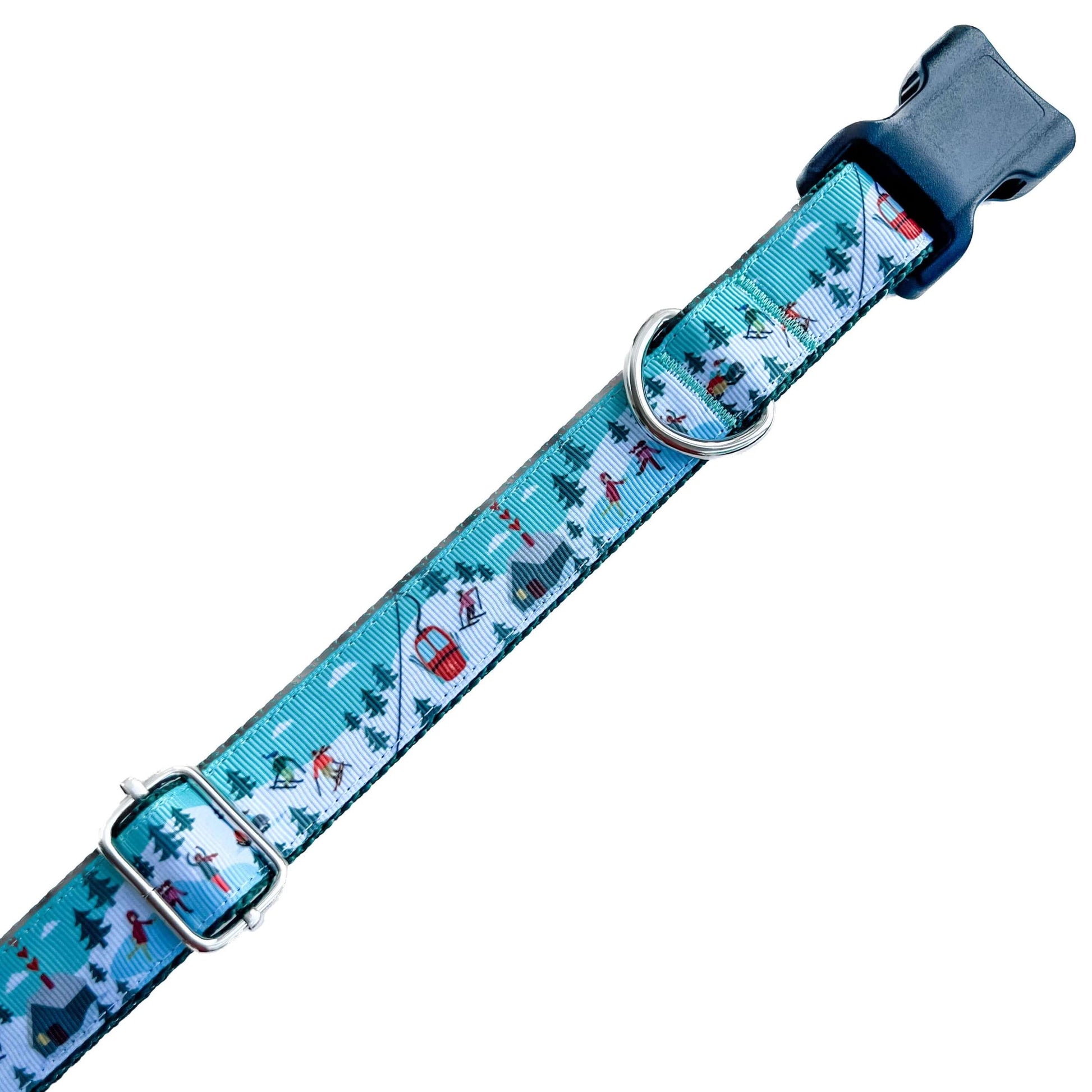 Holiday Snowy Ski Scene Winter Dog Collar