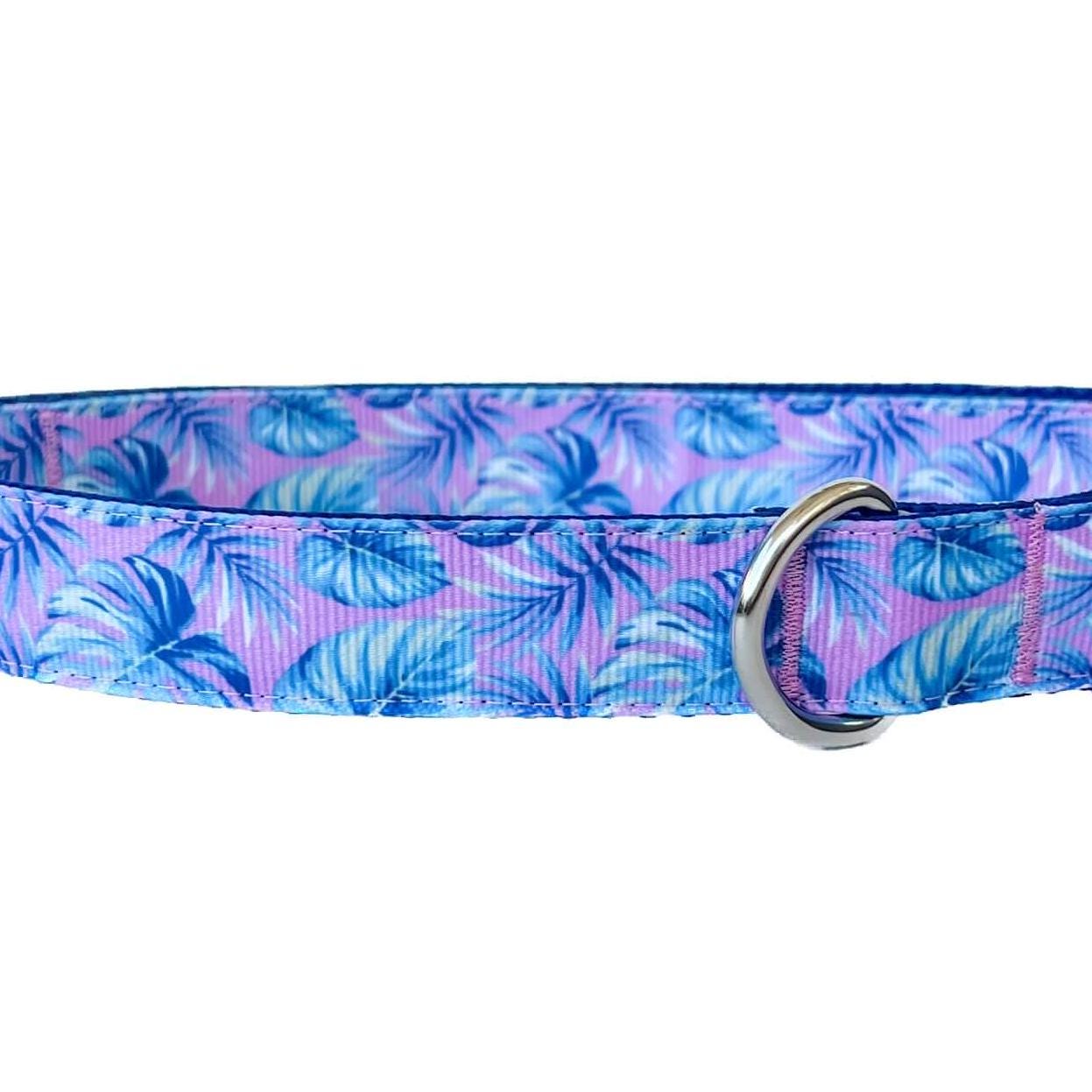 Expertly handcrafted, this 1" wide dog collar from Affluent Dogs® features a charming design of tropical palm fronds on pink Grosgrain ribbon.